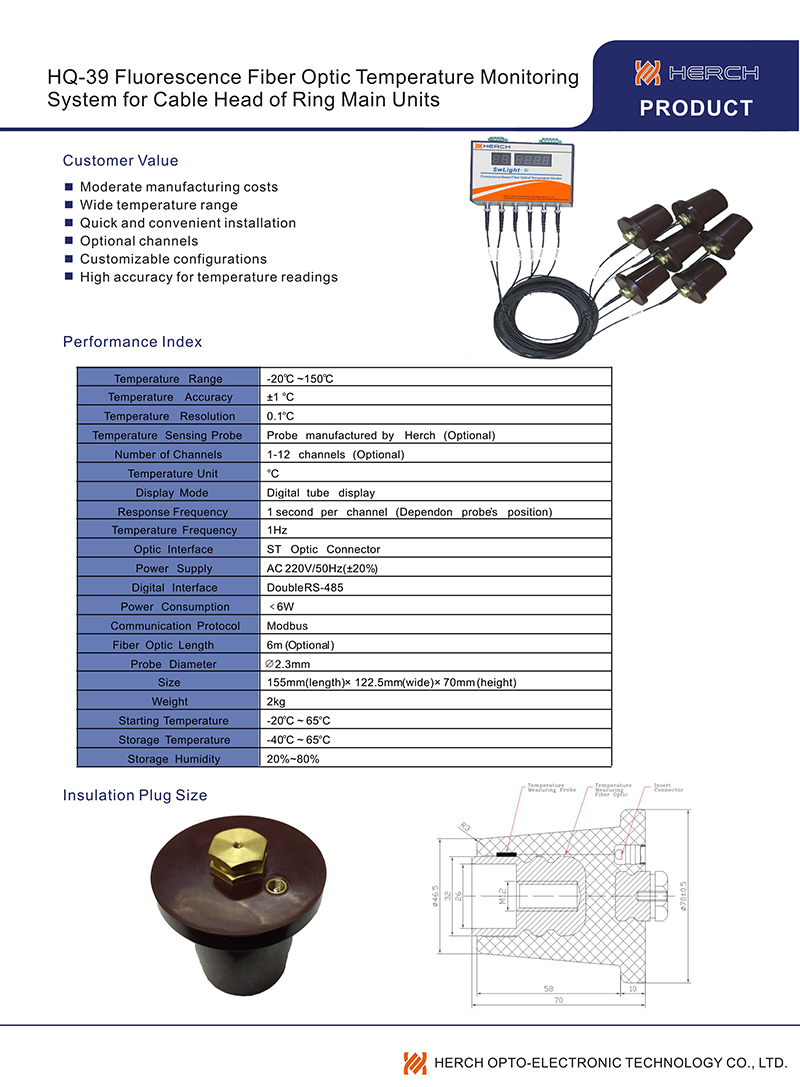 Products > Fluorescence-based Fiber Optic Temperature Monitoring System for Cable Head of Ring Main Units > HQ-39 Fluorescence Fiber Optic Temperature Monitoring System for Cable Head of Ring Main Units